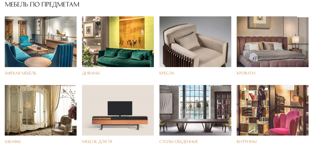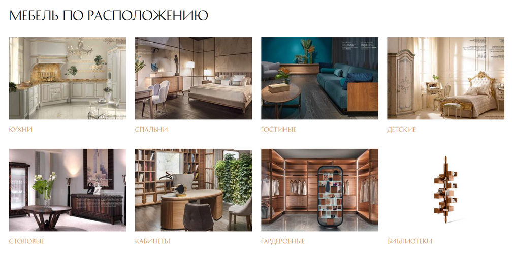 итальянской мебели сделан с учетом удобства подбора необходимой мебельной